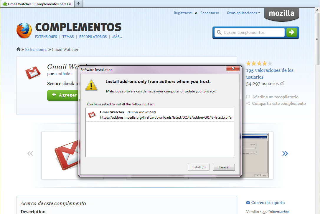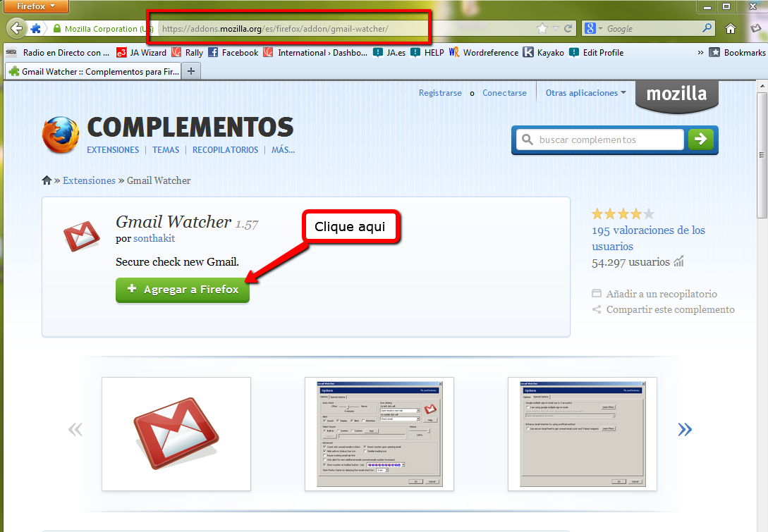 - Clique aquí y clique sobre el botón verde «Agregar a Firefox»: