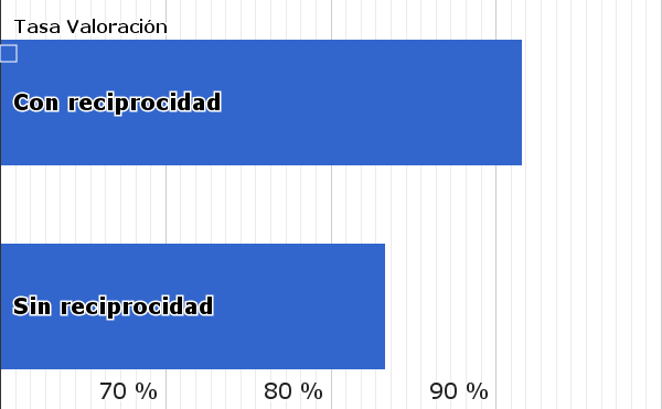 Pedimos al Experto que utilizase el principio de reciprocidad durante 12 preguntas seguidas. Hemos comparado la tasa de valoración entre las 12 preguntas con principio de reciprocidad, y las siguientes 12 preguntas que el experto respondió inmediatamente después, sin principio de reciprocidad. Estos son los resultados: