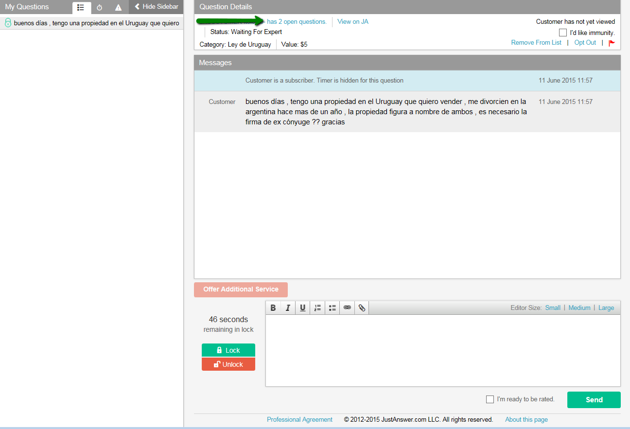 NOTA: Como pueden comprobar, estamos abiertos a escuchar sus opiniones, por tanto si consideran que tienen otra idea que puede ayudar a mejorar la confianza que los clientes tienen en JustAnswer, háganoslo saber.
