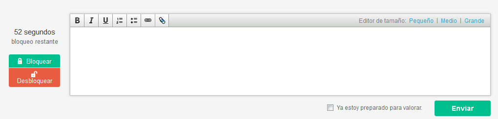En la zona roja hemos sustituido los enlaces para bloquear preguntas por botones: verde para bloquear, rojo para desbloquear la pregunta actual.roja