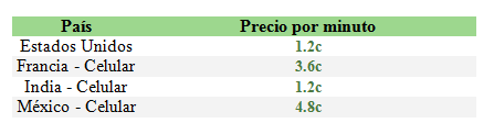 El coste de la llamada se puede mantener muy bajo, incluso para llamadas internacionales. Las tarifas de Google Voice, para una persona residente en España, son las siguientes: