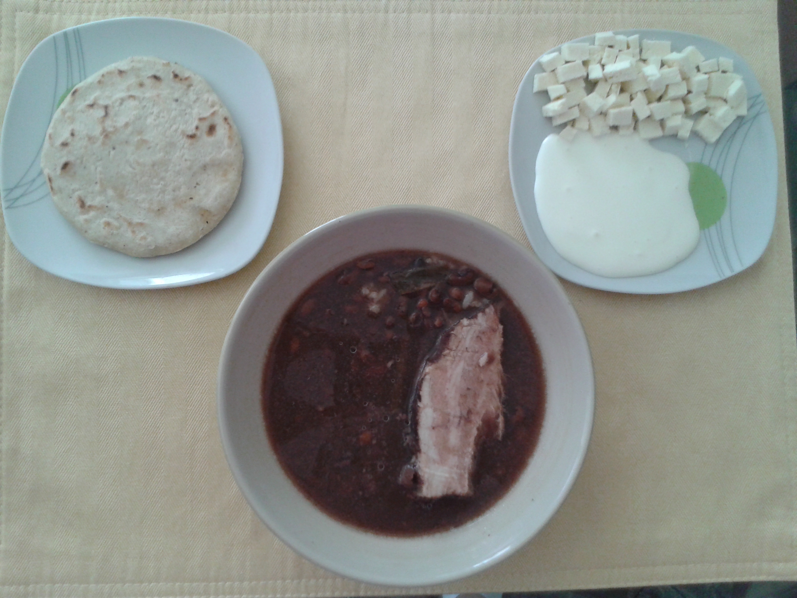 Mi comida favorita es… la sopa de frijoles monos (frijoles negros frescos) con costilla de cerdo. Les adjunto una foto como yo la hago, le agrego arroz, queso, crema y acompaño con tortilla.