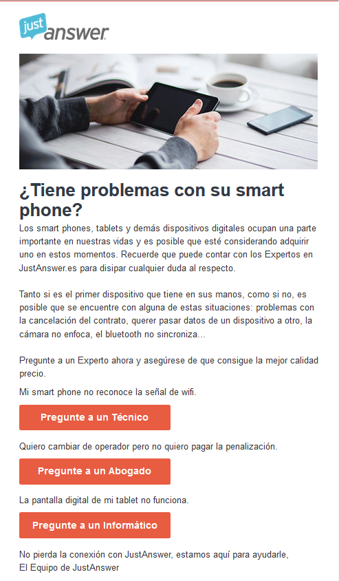 Si tiene algún tema de sugerencia para el Email marketing, por favor envíelo a través del correo expertos@justanswer.es