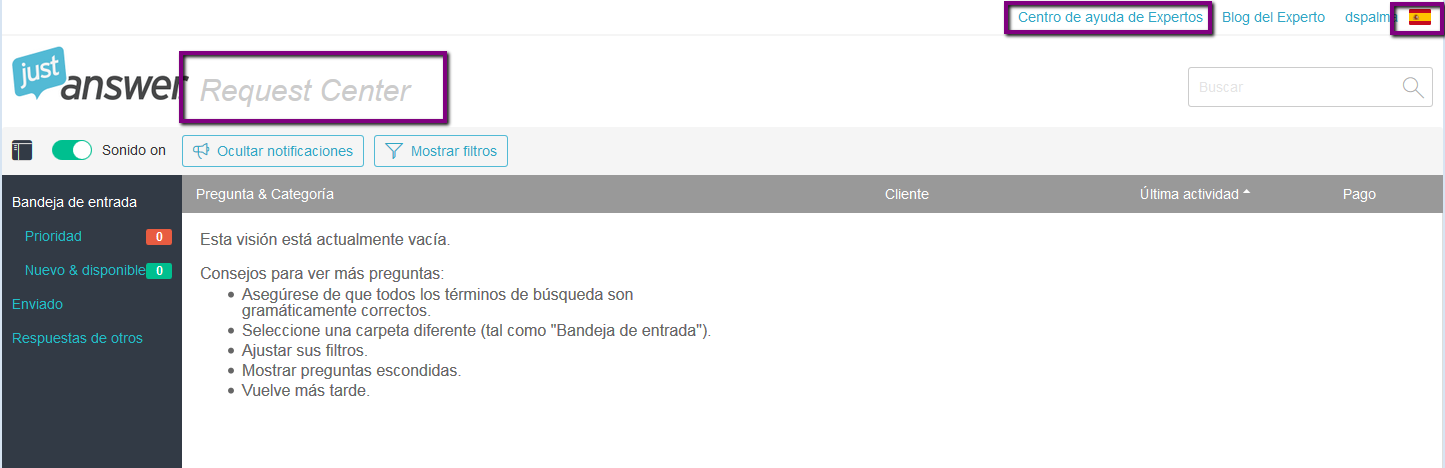Request center es el centro neurálgico donde vamos recibir todas las solicitudes de los clientes, ya sean preguntas escritas, control remoto, solicitud de elaborar un documento legal, tener una llamada por teléfono o un chat en vivo.. sea la solicitud por parte del cliente lo sea, es ahí, donde lo va a encontrar. Y la razón de utilizar un nombre en inglés, es debido a la globalidad de JustAnswer. Request Center es una plataforma única, donde los Expertos sean de donde sea, acceden para responder las solicitudes de los clientes. Expertos que trabajan para JustAnswer.com y JustAnswer.es a la vez, encuentran a los clientes en una única plataforma: Request Center.