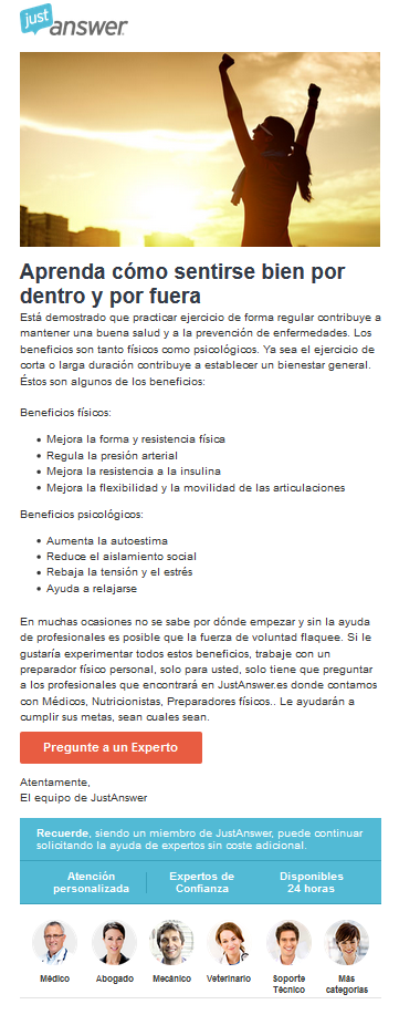 Como pueden ver con este correo electrónico tratamos de interesar a los usuarios en hacer preguntas en la categoría de Medicina y Psicología.